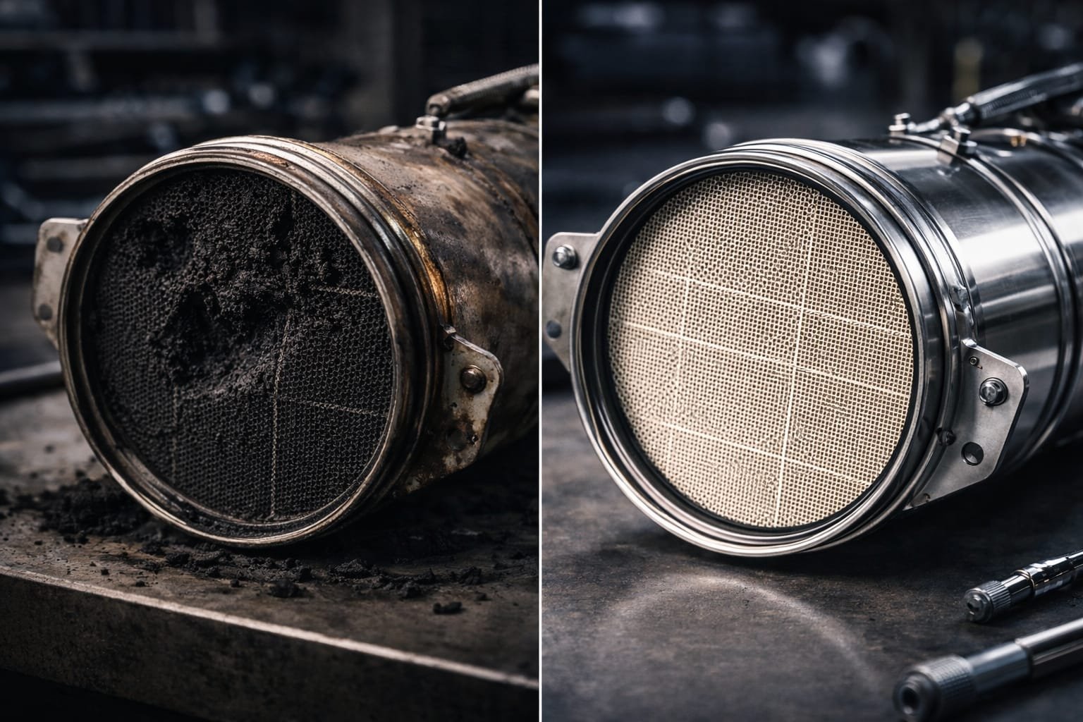 Professional chemical/thermal process removes up to 90%+ soot & ash — no replacement needed (Most common road-legal fix)